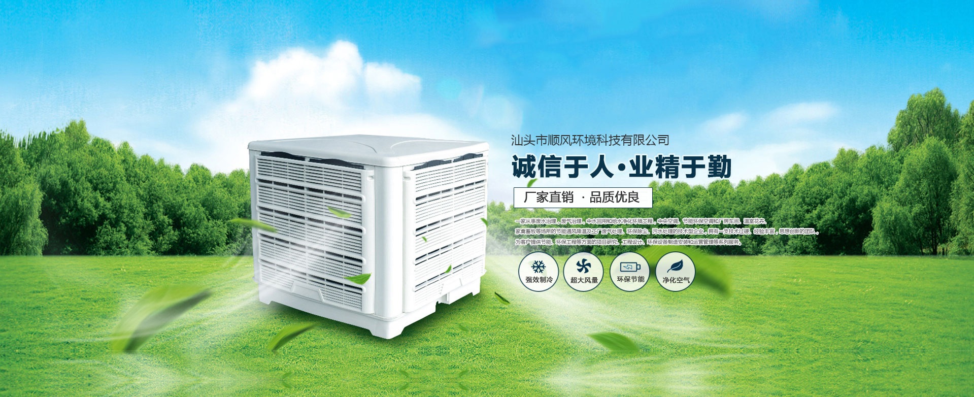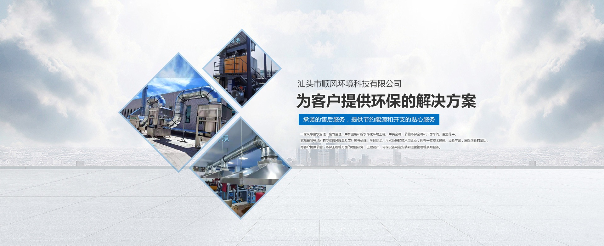 汕頭市順風環(huán)境科技有限公司,是一家專注從事廢水治理,廢氣治理,中水回用和給水凈化環(huán)境工程,中央空調(diào)、節(jié)能環(huán)保空調(diào)和廠房車間、溫室花卉、家禽畜牧等場所的節(jié)能通風降溫及工廠廢氣處理、環(huán)保除塵、污水處理的技術(shù)型企業(yè),擁有一支技術(shù)過硬、經(jīng)驗豐富,思想創(chuàng)新的團隊,為客戶提供節(jié)能、環(huán)保工程等方面的項目研究、工程設計、環(huán)保設備制造安裝和運營管理等系列服務。 多年來,公司堅持 “ 誠信于人,業(yè)精于勤” 的宗旨,憑借豐富的工作經(jīng)驗及雄厚的技術(shù)實力為多家大型公司、工廠、養(yǎng)殖、超市等大型綜合場所進行節(jié)能通風降溫及廢氣處理、污水處理等工程設計、安裝、維修、年度保養(yǎng),得到了顧客的一致好評并長期合作。